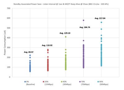 然而,在僅有一個 Wi-Fi 接入點的理想條件下所進行的測量,并不能全面反映能效的真實情況。Wi-Fi 信道擁塞情況以及接入點的型號會影響互操作性和功耗。