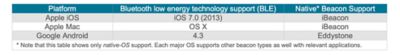 OS support for Bluetooth low energy technology and beaconing pseudo-standards?