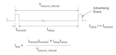 Transmitting a single beacon packet can take up to 376μs4, but could be shorter depending on which beacon standard is followed. How frequently a beacon advertises is a trade-off between power consumption and the tolerable application latency.