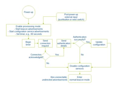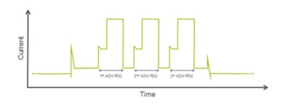 Note that some beaconing applications include other GATT services in addition to the beacon, and those services may interleave connectable advertising packets with the non-connectable beacon packets. In this case, the beacon performs a more typical advertising cycle with transmit/listen operations.